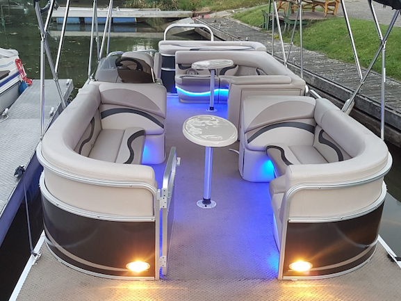Das Boot hat 3 große Ledersitzecken wo man entspannt drauf verweilen kann.